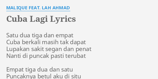 Cuba Lagi Lyrics By Malique Feat Lah Ahmad Satu Dua Tiga Dan